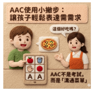 可是,當家長在生活中使用AAC(擴大及替代溝通系統,Augmentative and Alternative Communication)時,許多家長卻容易卡關了。有些家長覺得孩子「必須學會用完整句子」,有些則擔心「孩子沒有正確操作輔具」,結果反而讓AAC變得像一門艱難的「課程」,而不是生活中的自然工具。